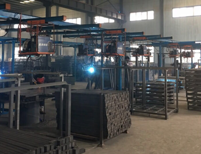 我們當前已經擁有2條鋼托盤生產線,共43個人工焊位,下半年完成第三條焊接線,配備6臺焊接機器人。