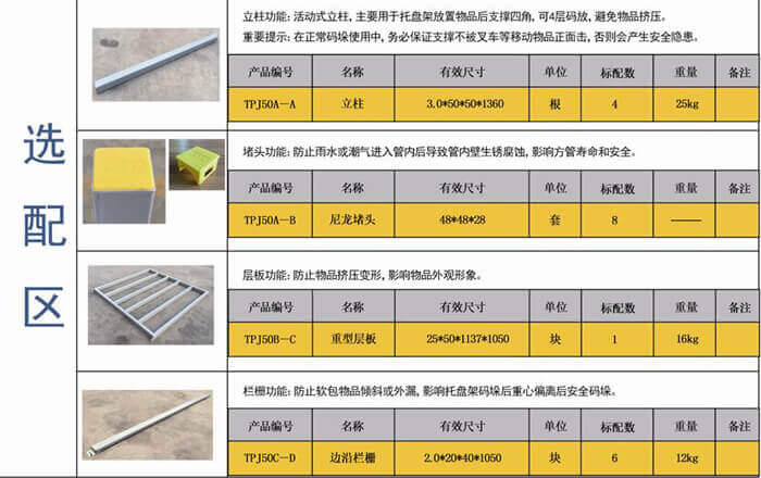50B型托盤架 產品介紹:本產品主要優點是與叉車配合實用,可充分利用倉庫高度空間。降低倉儲費用,管理和經營費用。主要用于軟袋子包裝和紙箱包裝物品存放和顆粒物品存放防止積壓,常用于冷鏈、飼料、塑料顆粒倉儲及物流。