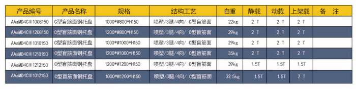四向三腿——C型盲筋面鋼托盤 主要用途: 倉庫、車間周轉(zhuǎn)、物流倉儲